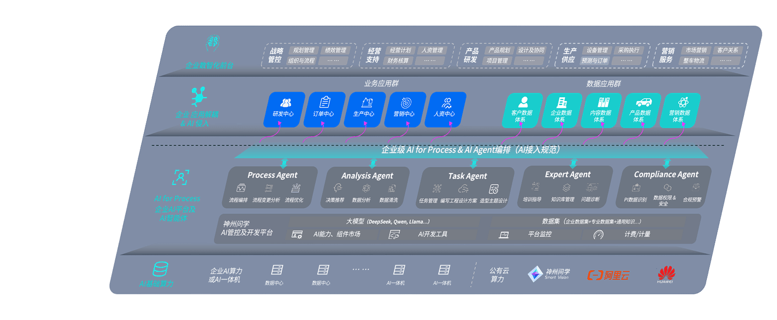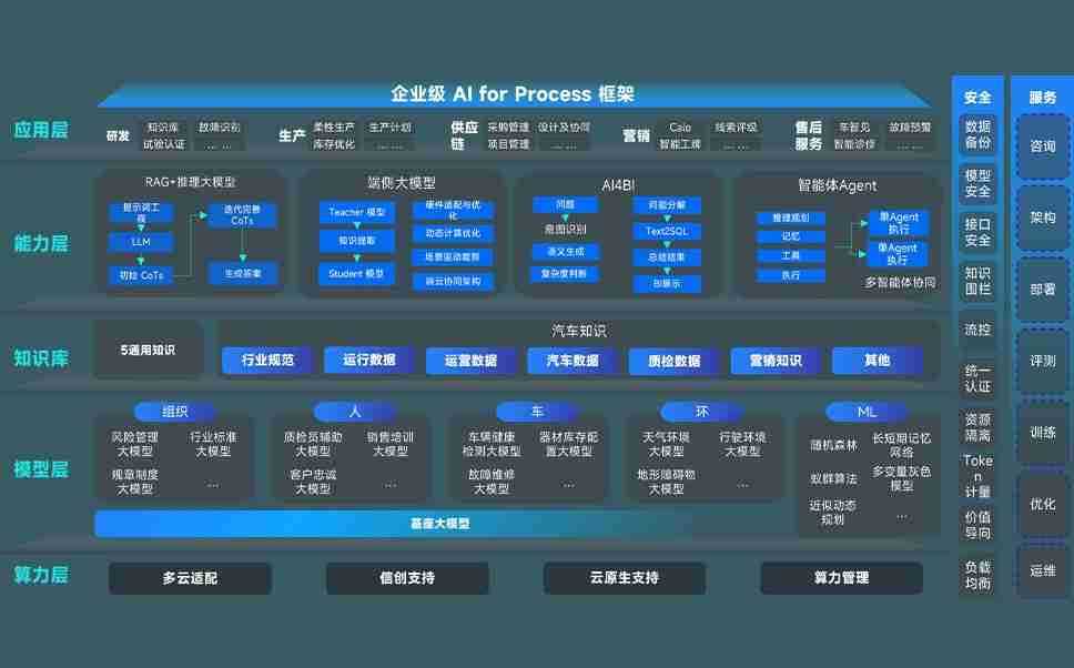 龙门国际问学智车解决方案是一套基于AI技术的汽车行业智能化系统,,,覆盖从底层算力到顶层AI应用的全栈方案。。。。方案由算力层、、模型层和应用层组成:算力层,,方案支持多种一体机配置,,,,具备云端灵活部署、、多云适配以及动态优化计算资源的能力;模型层,,,龙门国际问学平台版提供了企业级AI应用一站式构建与管理平台,,,,支持基于后训练强化技术的汽车企业专属模型的训练、、评测和运营;应用层,,龙门国际问学DeepSeek版提供包括超级员工、、智能招采、、、智能营销、、、智能客服、、AI for BI等一系列解决方案,,,,可助力汽车行业实现数字化转型,,让管理更智能、、、、响应更敏捷。。。